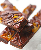 | ブラウニー・バーにして、手土産に。 トッピングは栗の替わりに金柑を。 ロールケーキ用天板に流し焼成後 チョコレートをかけました。 生地の配合はこちらの日記をご参照下さい。 |